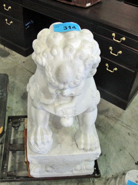 Solid white marble foo dog statue