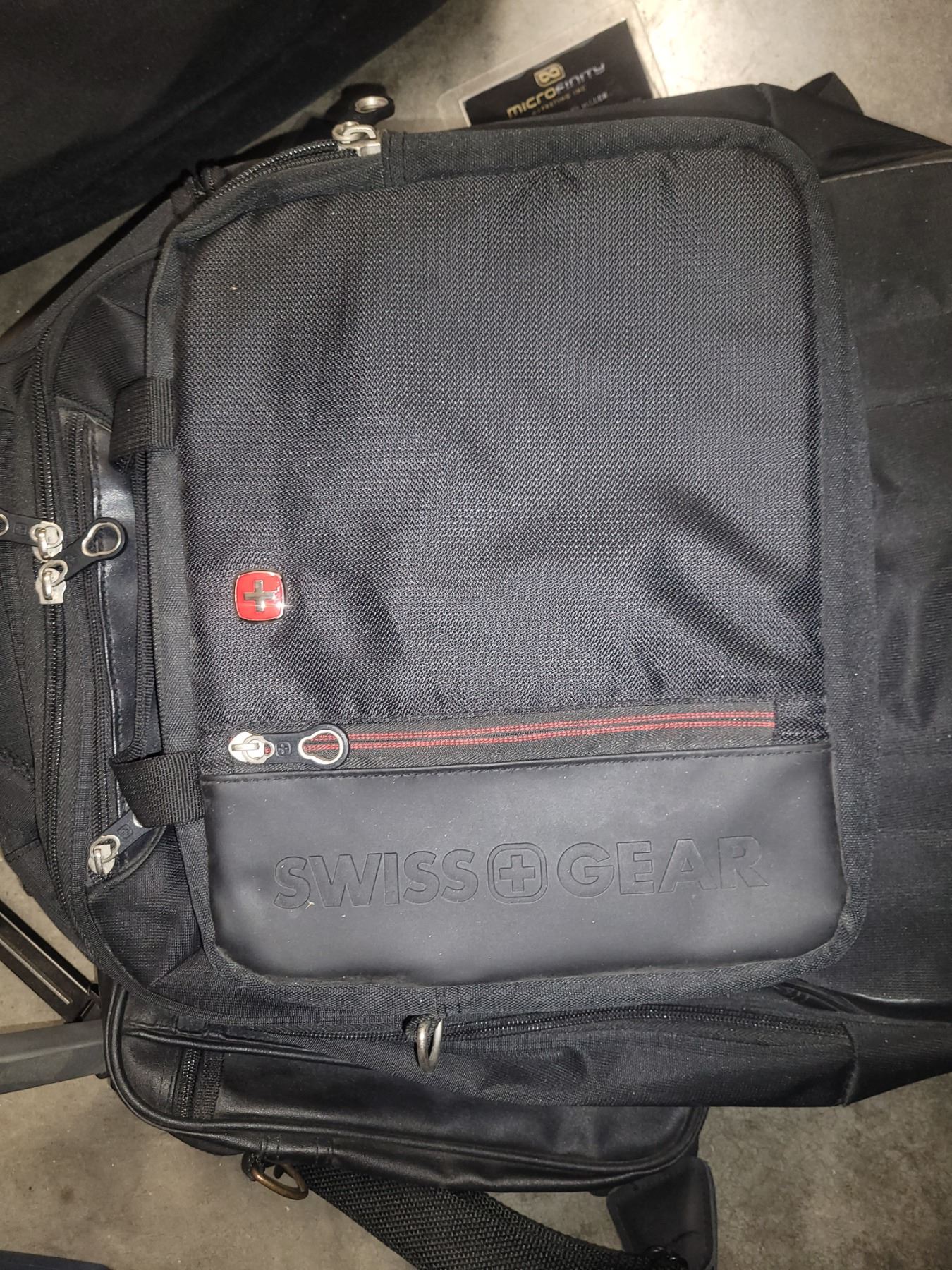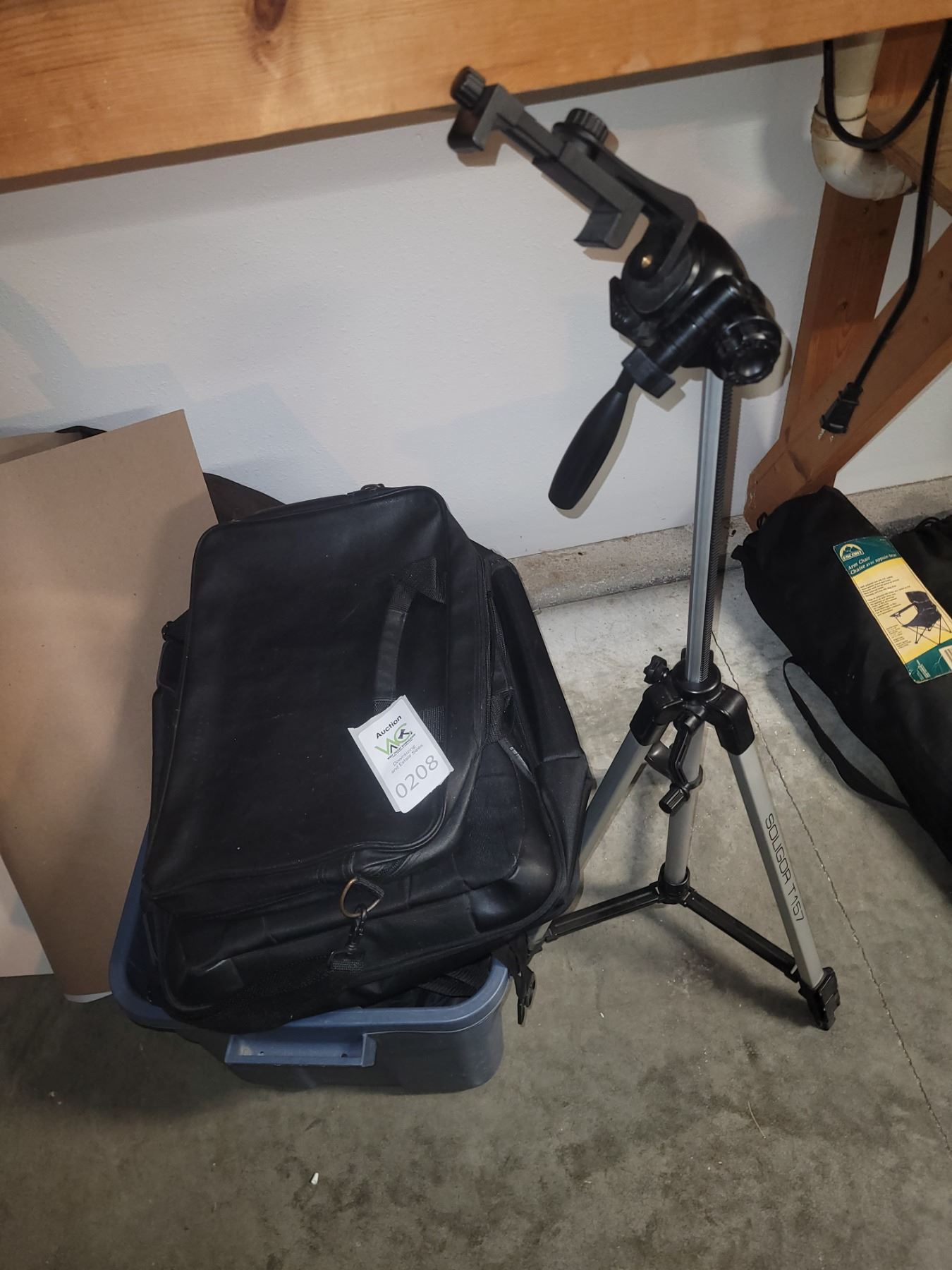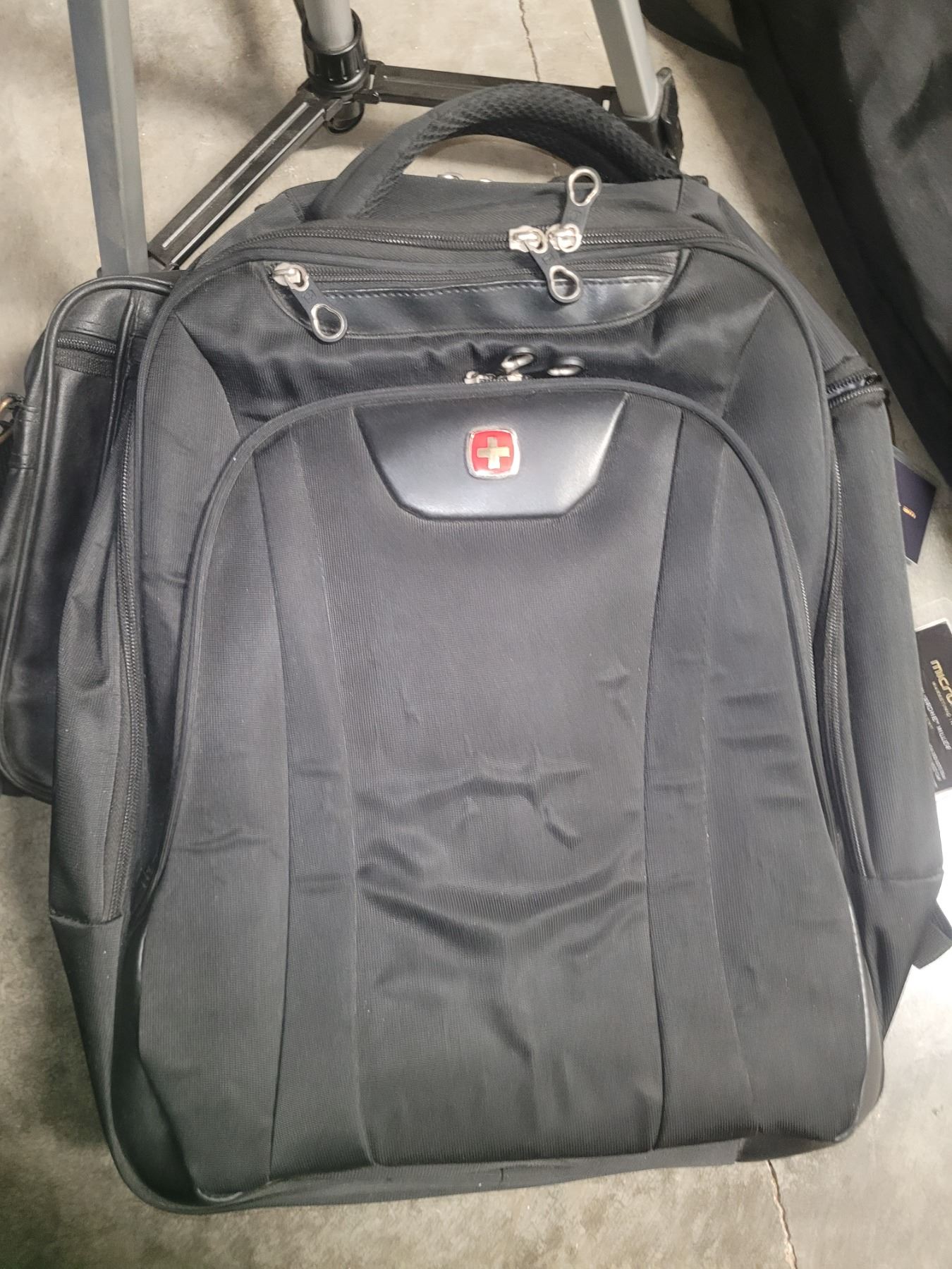 Soligor T157 tripod, Swiss Army Knapsack, Targus laptop bag, Aquatech bag and more. Pickup at 10 am