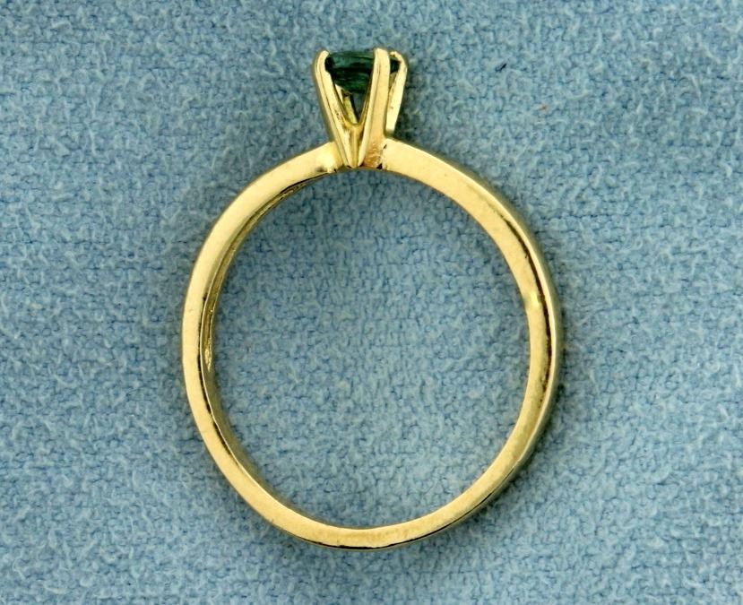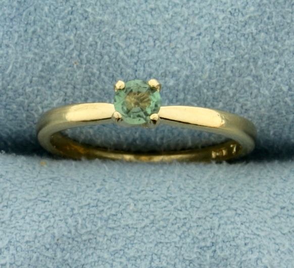 In 14K Yellow Gold. Contains a natural 3.5mm round Alexandrite gemstone that changes color from light green to purple depending on light source. Size 5 1/2. 1.6g