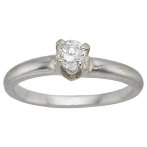<B>Diamond, White Gold Ring</B></I> The ring features a round brilliant-cut diamond weighing approximately 0.25 carat, set in 14k white gold. Gross weight 2.40 grams.<BR>*<I>Note: Size 5 (sizeable)</B></I><BR><BR><b>Shipping:</b> Miscellaneous Collectibles, Smal (<a target="_blank" href="http://www.heritageauctions.com/common/shipping.php">view shipping information</a>)