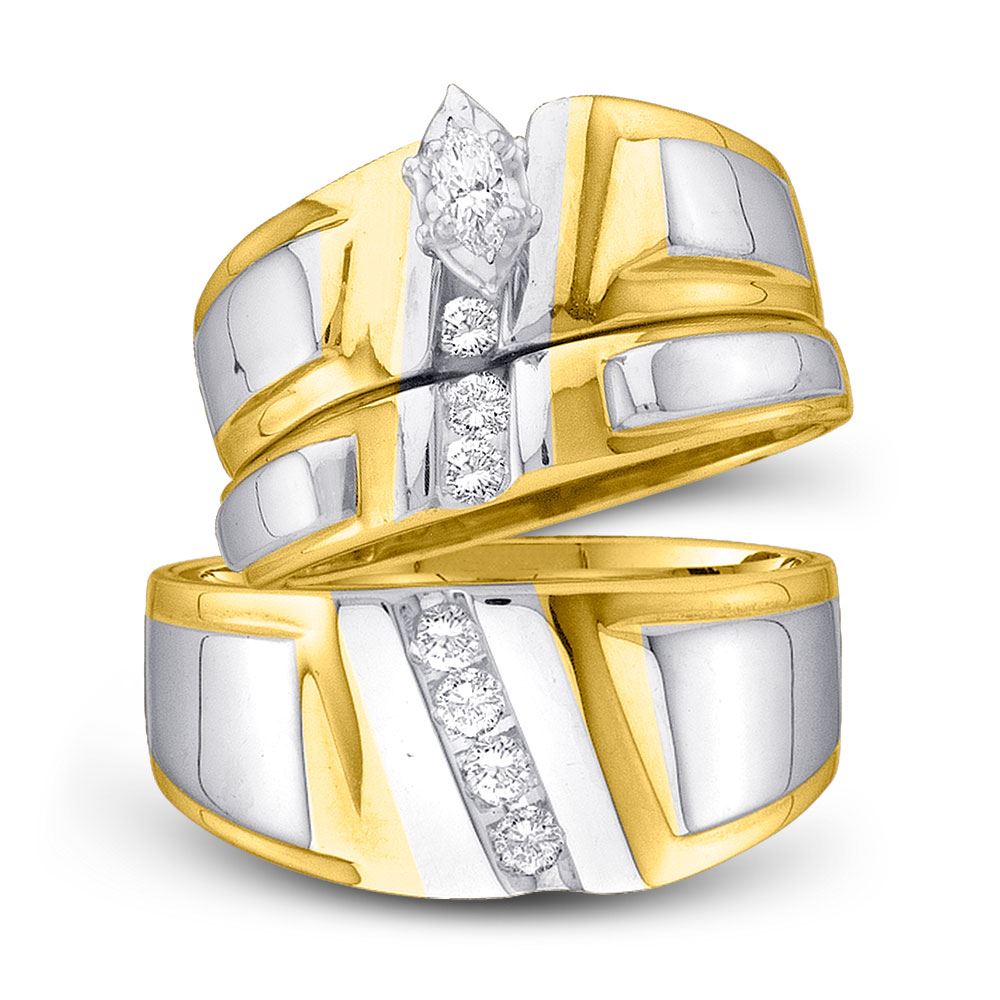10kt Yellow Gold His Hers Marquise Diamond Solitaire Matching Wedding Set 1/4 Cttw.