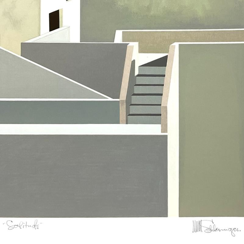 Solitude by Schlesinger (1915-2011). "Solitude" is a limited edition serigraph on paper by William Schlesinger (1915-2011), numbered and hand signed by the artist. Includes Letter of Authenticity. Measures approx. 28.5" x 29" (border), 23" x 23" (image). Due to the age of this piece there may be very minor imperfections on the paper.