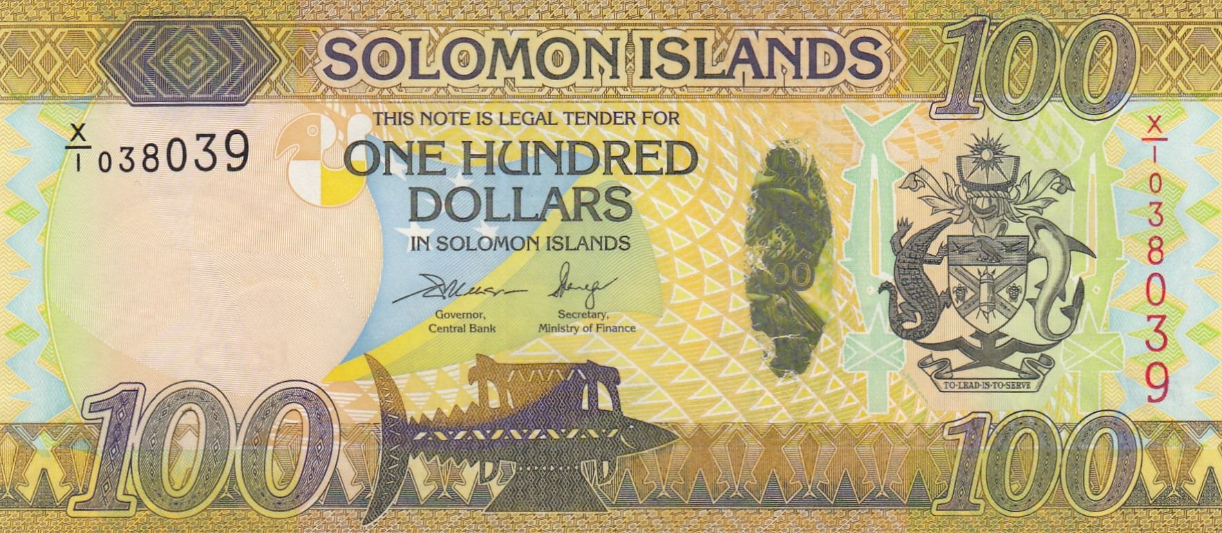 Solomon Islands, 100 Dollars, 2015, UNC, p36r, REPLACEMENTbr/serial number: X/1 038039