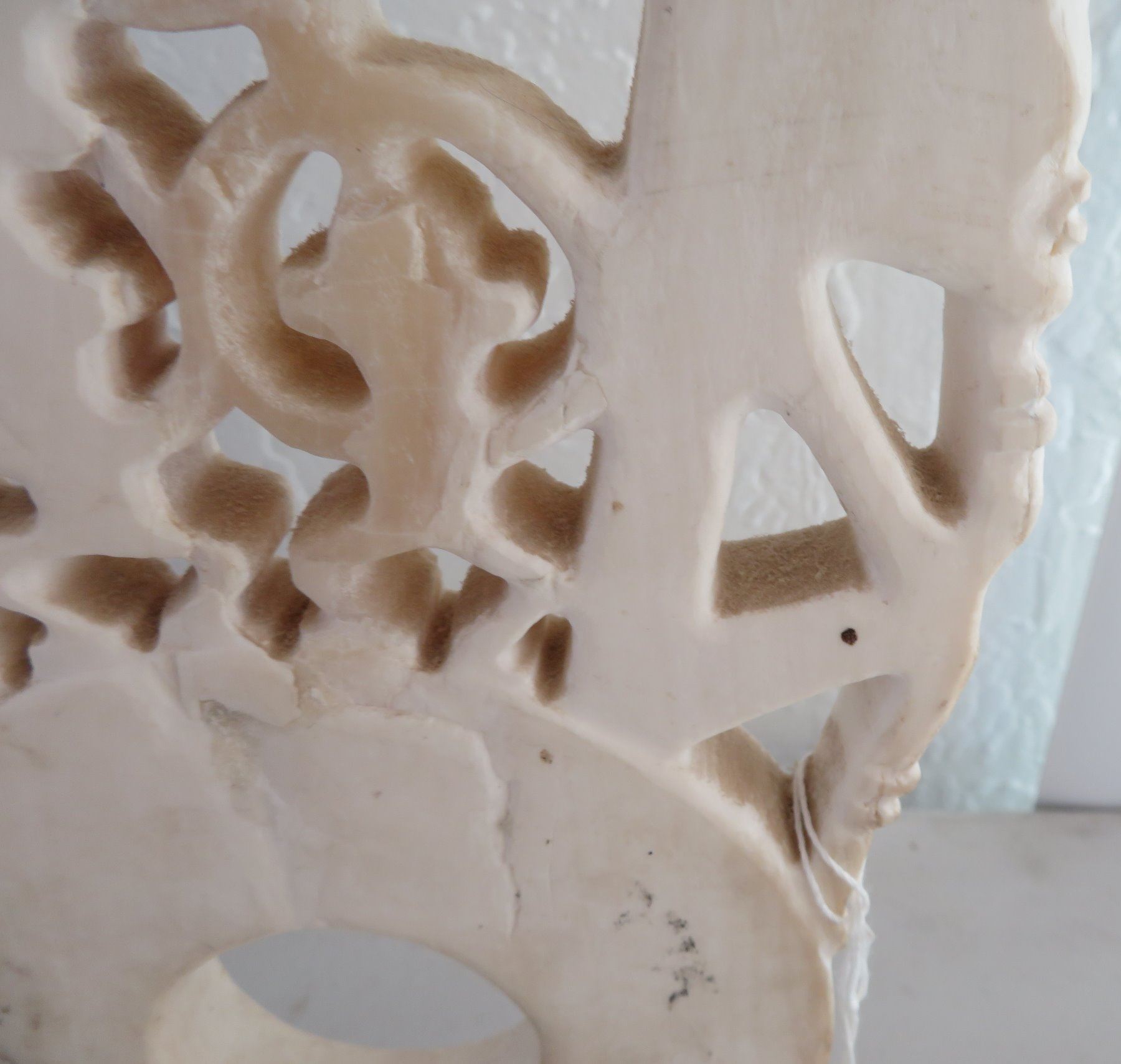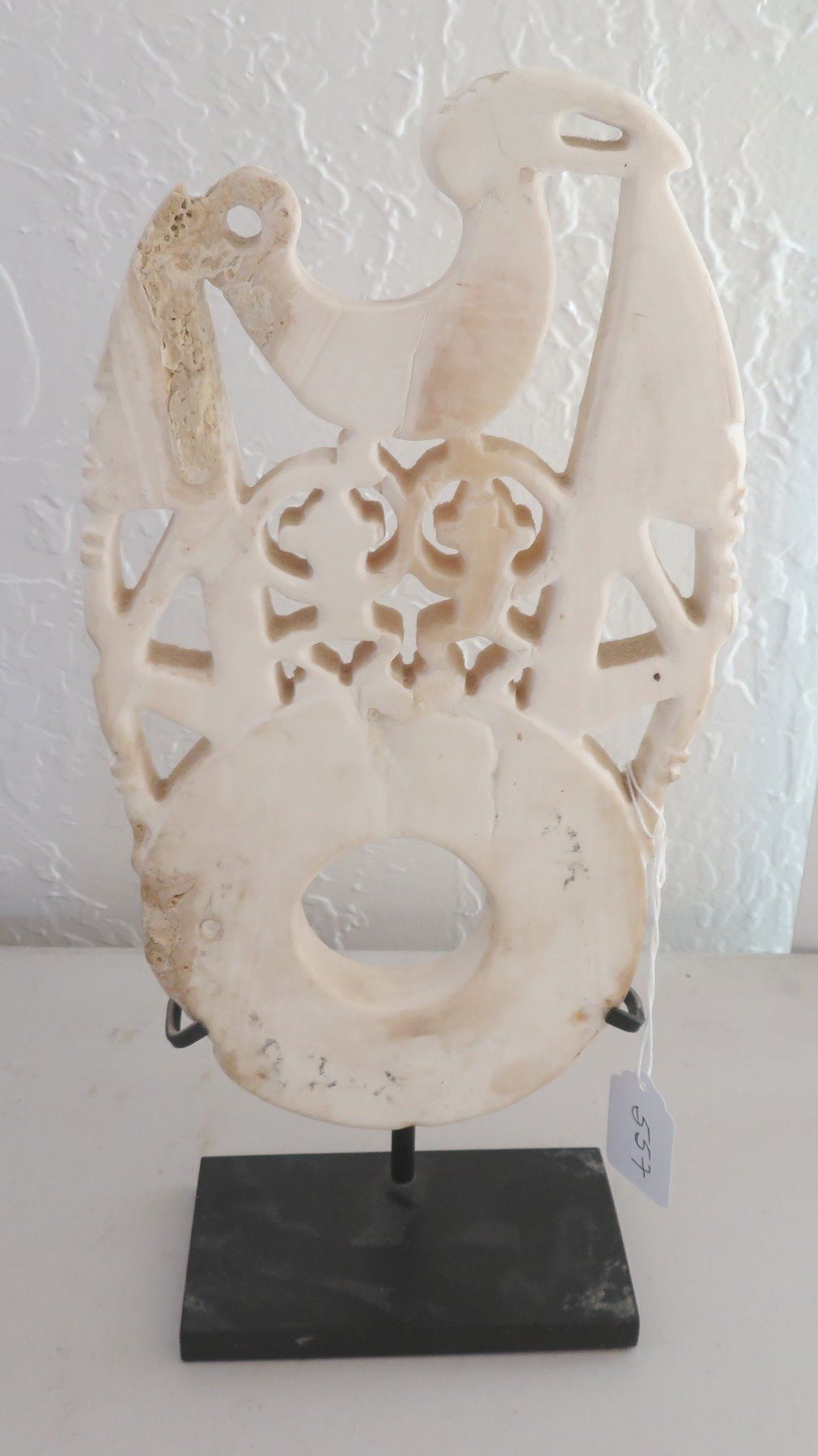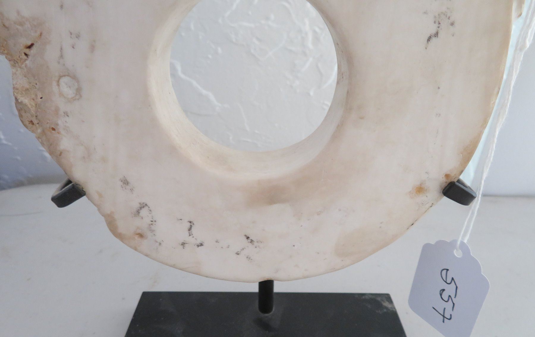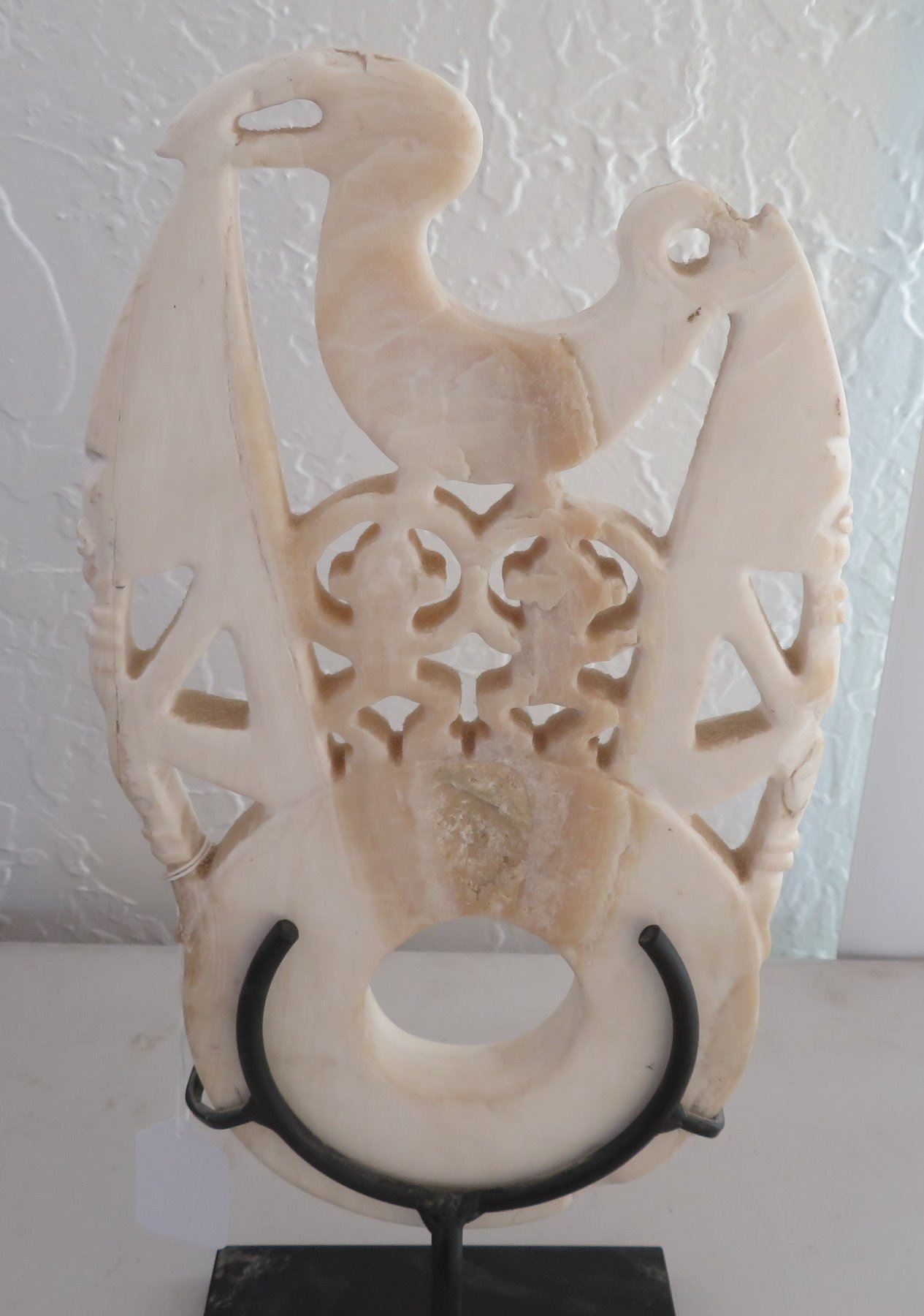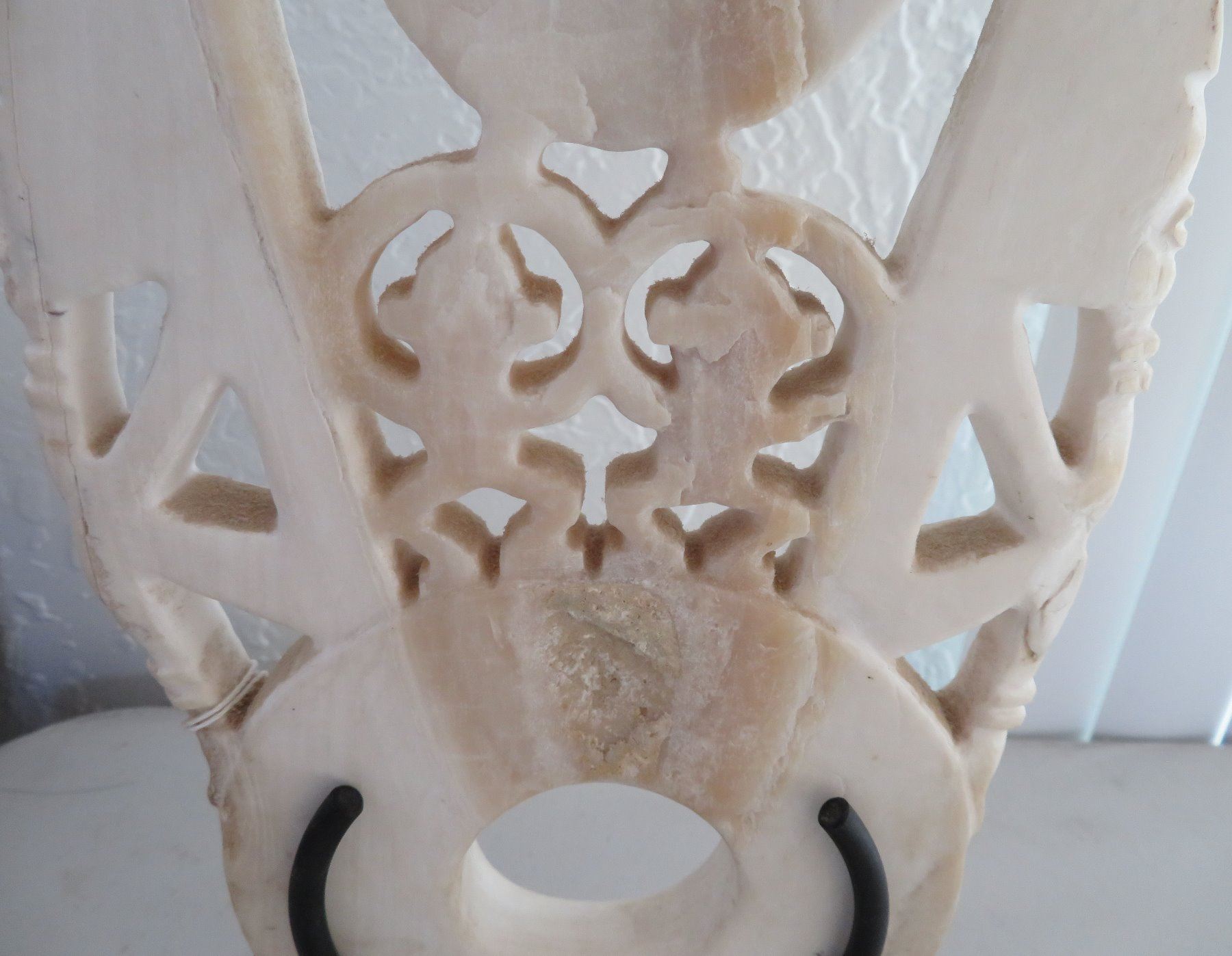 Solomon Islands Bokolo Shell Carving, c. 1940s. Made of shell and iron stand, the item measures 6 3/4" x 11 3/4", stand base measures 5 1/2" x 3". New Georgia, Solomon Islands. Condition: Good, see images. Shipping: $45.00 USA estimate only, due to size, weight and value, w/insurance and signature.