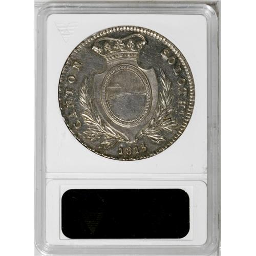 <B>Solothurn. 4 Franken 1813, </B></I>KM73, AU58 ANACS, lightly toned and attractive, tiny flan flaws on the reverse. Rare type.