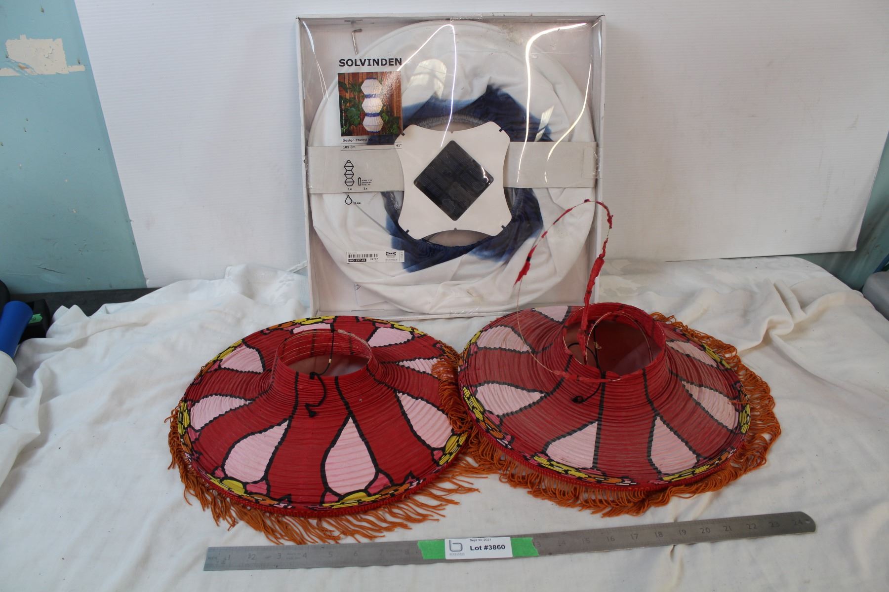 Solvinden Ikea light, two paper lamp shades (one broken)