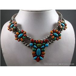 Turquoise and Stone Necklace w/ Sterling Silver Accents Weight: 148.4 Grams Retail: $ 149.00