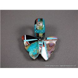 Turquoise Circle and Butterfly Pendant w/ Mother Of Pearl and Black Onyx-Marked Chris Nieto Weight: