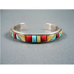 Multi-Colored Stone Inlaid Sterling Silver Bracelet-Marked VMR Weight: 22.1 Grams Retail: $ 395.00