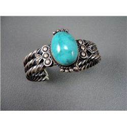 Sterling Silver Bracelet w/ Turquoise Stone-Marked D. Livingston Weight: 88 Grams Retail: $ 895.00