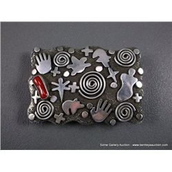 Sterling Silver Sand Cast Belt Buckle w/ Coral Stone-Marked Alex Sanchez Weight: 70.4 Grams Retail: