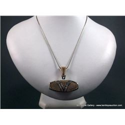 Sterling Silver Chain w/ 14K Yellow Gold on Sterling Silver Pendant w/ Diamonds-Marked De Acoma Weig