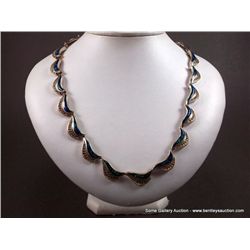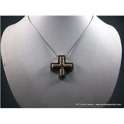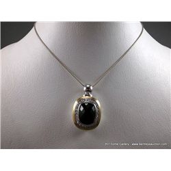 Sterling Silver Necklace w/ 18K Yellow Gold on Sterling Pendant w/ Black Onyx & Diamonds-Marked CS W
