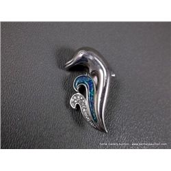Sterling Silver Dolphin Pin w/ Opal & Clear Gems Weight: 11 Grams Retail: $330.00