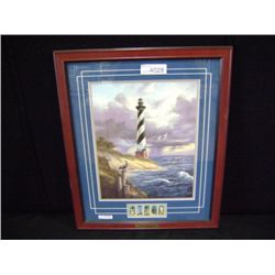 Framed Collector's Print of Lighthouse by Reichardt w/ (5) $0.25 Stamps "Cape Hatteras"