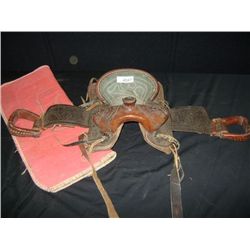 Old Hand Tooled Childs Miniture Saddle & Blanket
