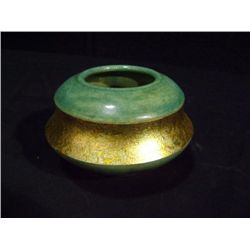 Loewenkamp Pottery, Raku Fired Clay, Reticulated Gold Step Patterns 6"x5 1/2"x3" Retail: $225.00