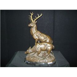 Bronze Metal Sculpture of a Bear Family on a Log By Charlie Bipp? 2007 9 1/2"x13 1/2"x6", on a grani