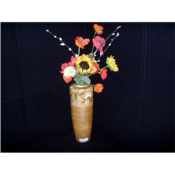 Ceramic Cylindrical Vase, Tan w/ Leaves 18 1/2" high x 6 3/4" diameter, orif. at 3" Retail: $25.00