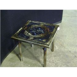 Square Metal Gold Scroll Table w/ Art Glass Top Retail: $225.00