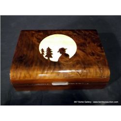 Velvet-Lined Wooden Box w/ Mountain Man & Pines on Cover 3"x10"x8"