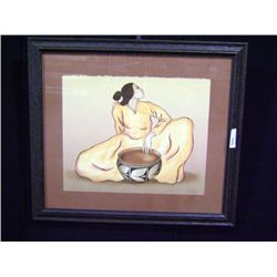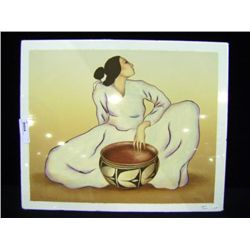 R.C. Gorman 1981 Lithograph of a Woman Seated in a Pale Yellow Dress w/ a Santo Domingo Pot Ed. 60/1