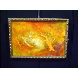 Tryptich on Canvas Abstract Expressionist Landscape-Artist Unknown 38 1/2"x19 1/2"