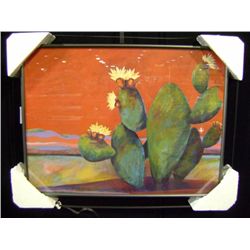 Loffino Oil Painting on Canvas of a Cactus w/ Flowers 32 1/4"x24"