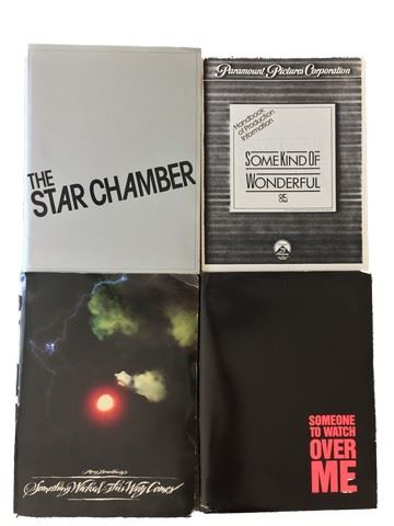 Collection of 4 press kits with black and white publicity stils included, sized mainly 8x10's from various movie studios(1980's). From 20th Century Fox "The Star Chamber" (1983) starring Michael Douglas as Judge Steven Hardin, Hal Holbrook as Judge Benjamin Caulfield, and Yaphet Kotto as Det. Harry Lowes, includes 8 stills. From Walt Disney Productions "Something Wicked This Way Comes" (1983) starring Jason Robards as Charles Halloway, Jonathon Pryce as Mr. Dark, and Diane Ladd as Mr Nightshade, includes 10 stills. From Paramount Pictures "Some Kind of Wonderful" (1987), starring Mary Stuart Masterson, Eric Stoltz as Keith Nelson, and Lea Thompson as Amanda Jones, includes 2 stills.