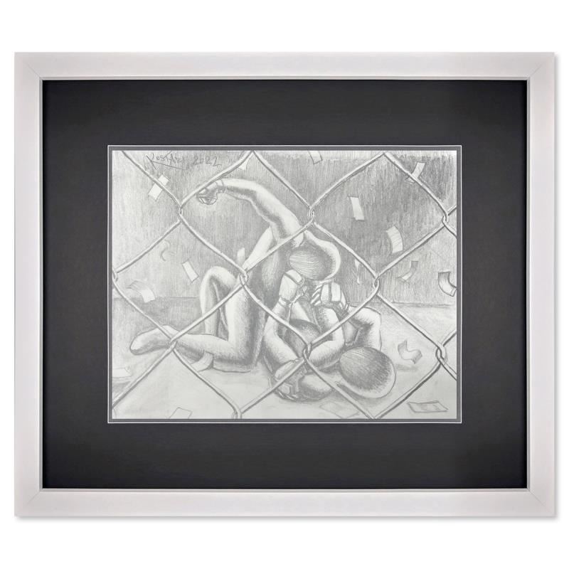 "Some of us are Safe" is an original drawing on paper by Mark Kostabi, hand signed by the artist. This piece comes custom framed and includes a certificate of authenticity. Measures approximately 14.5" x 17" (frame), 8.5" x 11" (image).