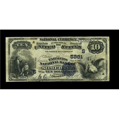 <B>Somerset, KY</B></I> - $10 1882 Value Back Fr. 577 <B>The Farmers NB</B></I> Ch. # (S)5881<BR>This is one of just a handful of Value Backs in the census from this tough bank, and a nice one at that. <B>Fine+,</B></I> with good signatures.