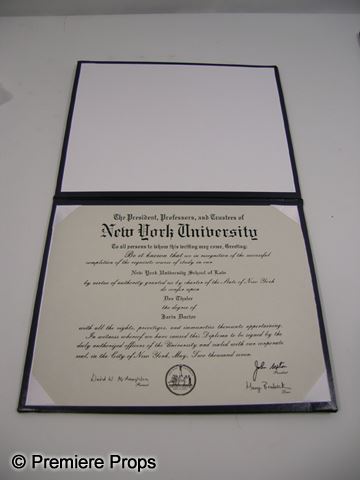 Dex (Colin Egglesfield) screen used, 'NYU School of Law' diploma.