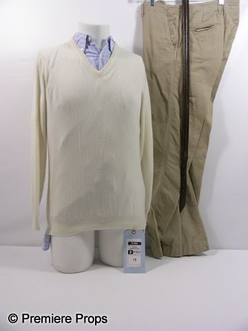 Dex (Colin Egglesfield) screen worn, off white long sleeve v-neck 'Sacks Fifth Avenue' sweater, (size M) blue with yellow stripes, button down the front long sleeve 'Gant' shirt, and khaki 'J. Crew' pants. (size 31) Includes wardrobe tag!