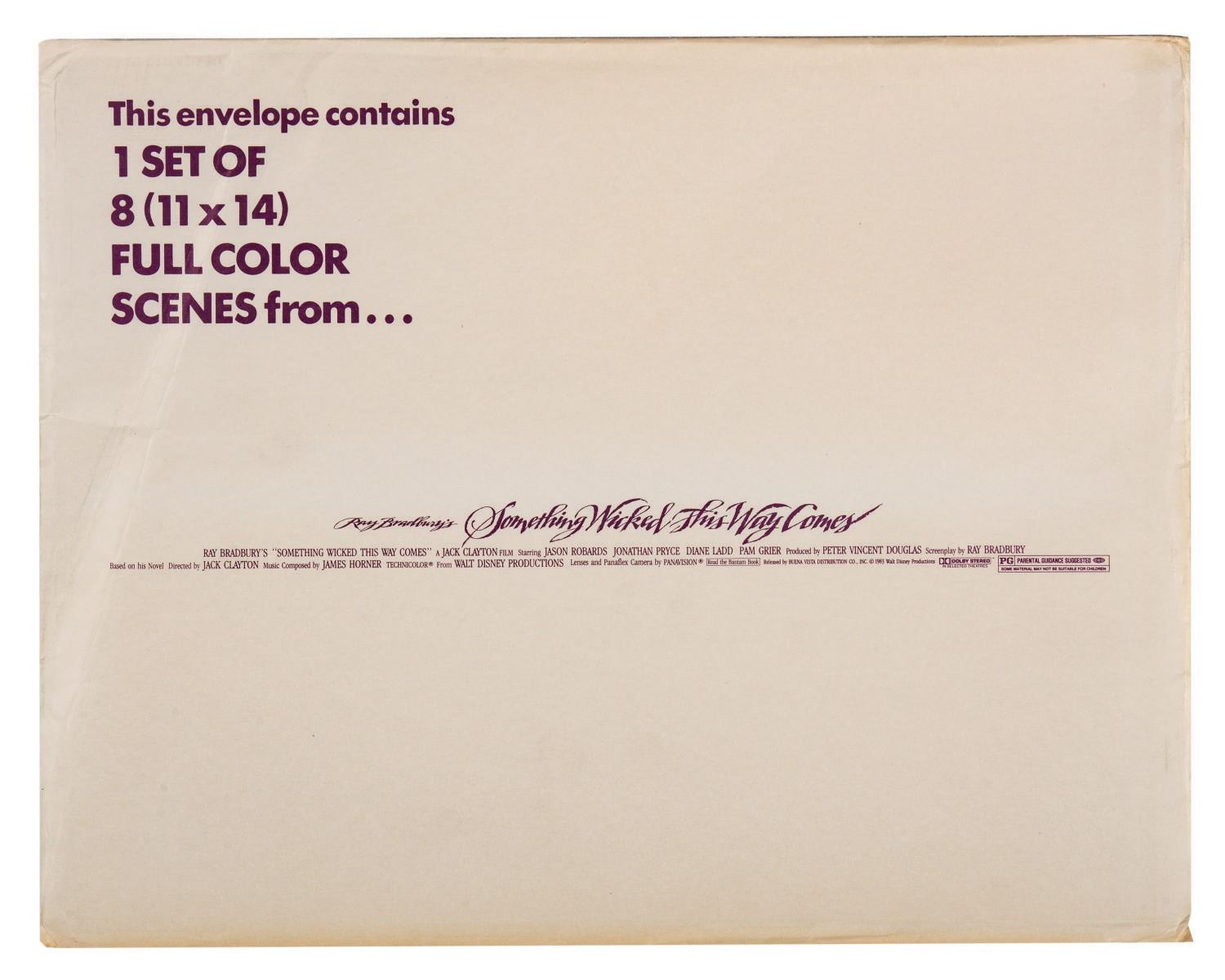 (Disney, 1983) A collection of (8) original release full-color lobby cards for Disney's 1983 feature film "Something Wicked This Way Comes." Measuring 11"x14" each, the cards with original envelope are in fine condition.