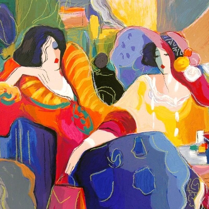 "Something to Say" is a limited edition serigraph on paper by Isaac Maimon, numbered and hand signed by the artist. Includes Letter of Authenticity. Measures approx. 24" x 19" (border), 21.5" x 16.5" (image).