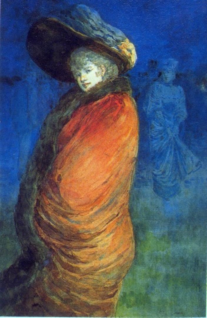 Artist: Francois Clement (Henri) Sommier - Title: Red Overcoat - Medium: Fine Art Reproduction Giclee on Canvas - Image Size: Approximately 20 inches x 13 inches - Unframed on Unstretched Canvas - Biography: Born Francois Clement (Henri) Sommier, the artist adopted an abbreviated surname and often signed himself "Henry", "Hy Somm", or simply "Hy S", as on this particularly fine proof impression. An impassioned collector of Japanese art, Henri Somm was a close friend of the famous critic and art collector, Phillipe Burty. Influenced by the style of J.J. Tissot, Henri Somm's work follows two distinct sources of inspiration: the Japonism prevalent in Paris towards the end of the nineteenth century and the elegant Parisian ladies of the Belle epoque. In his finest works Henri Somm demonstrates an absolute mastery of drypoint technique which places him amongst the great original printmakers of the Parisian Belle epoque.