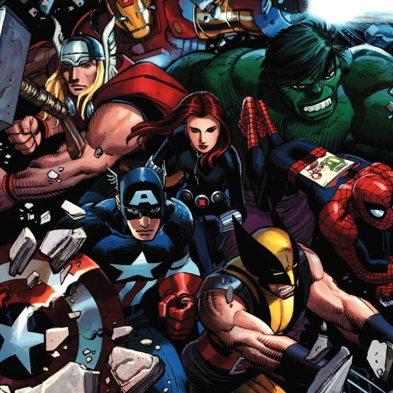 A piece of comic book history, this limited edition, from original art by John Romita Jr., depicts Thor, Captain America, Iron Man, Black Widow, Wolverine, Hulk and Spider-Man. John Romita Jr. began his career at Marvel UK, doing sketches for covers of reprints. His American debut was with a six-page story entitled "Chaos at the Coffee Bean!" in The Amazing Spider-Man Annual #11 in 1977. His early popularity began with his run on Iron Man in 1978. Since then he has worked on many other comic book series including Thor, Fantastic Four, Daredevil and X-Men. "Son of Marvel: Reading Chronology" is a limited edition giclee on canvas by John Romita Jr. presented by Marvel Comics! This piece comes gallery wrapped. Includes Certificate of Authenticity! Measures approx. 24" x 18" (image).