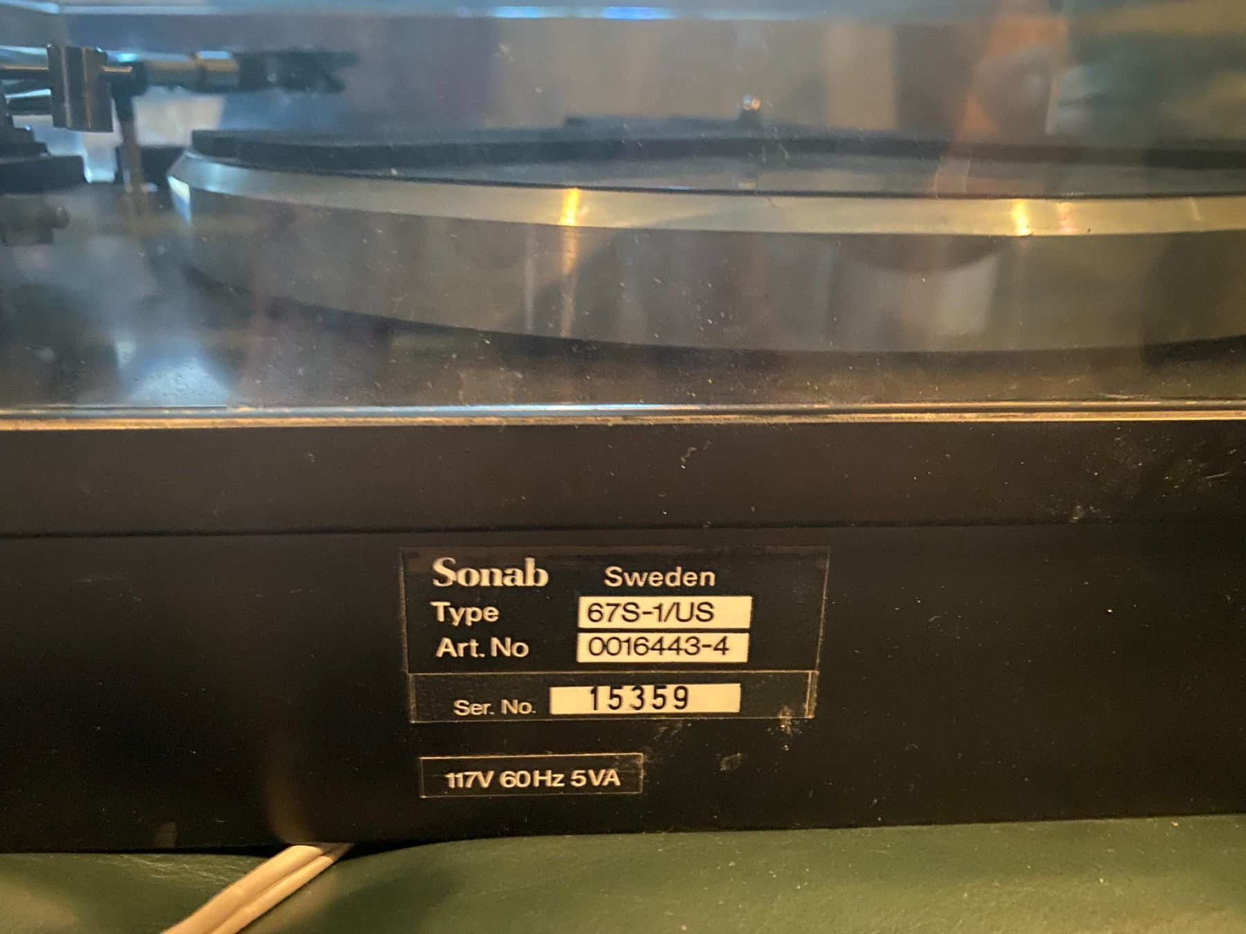 Sonab Portable Turntable (Model No. 67S-1/US)