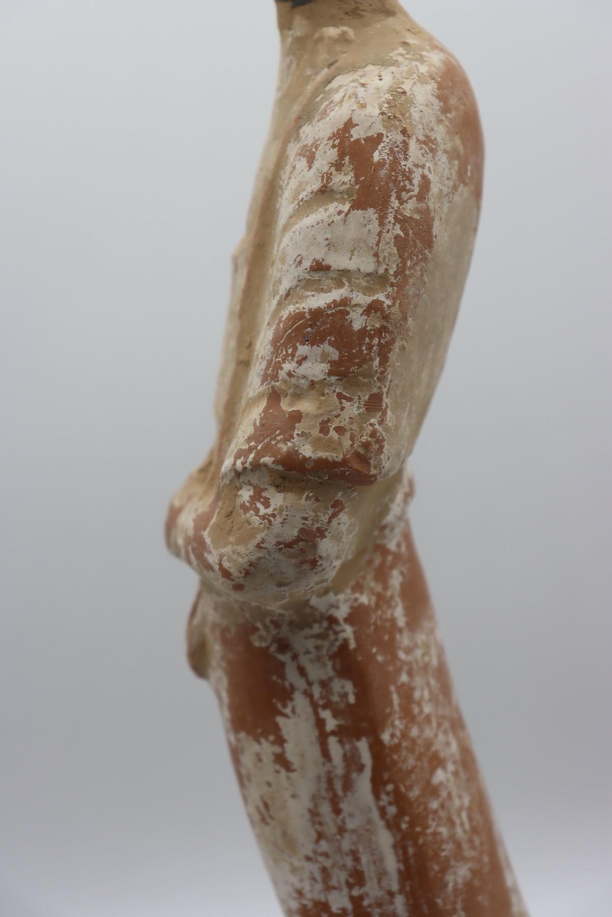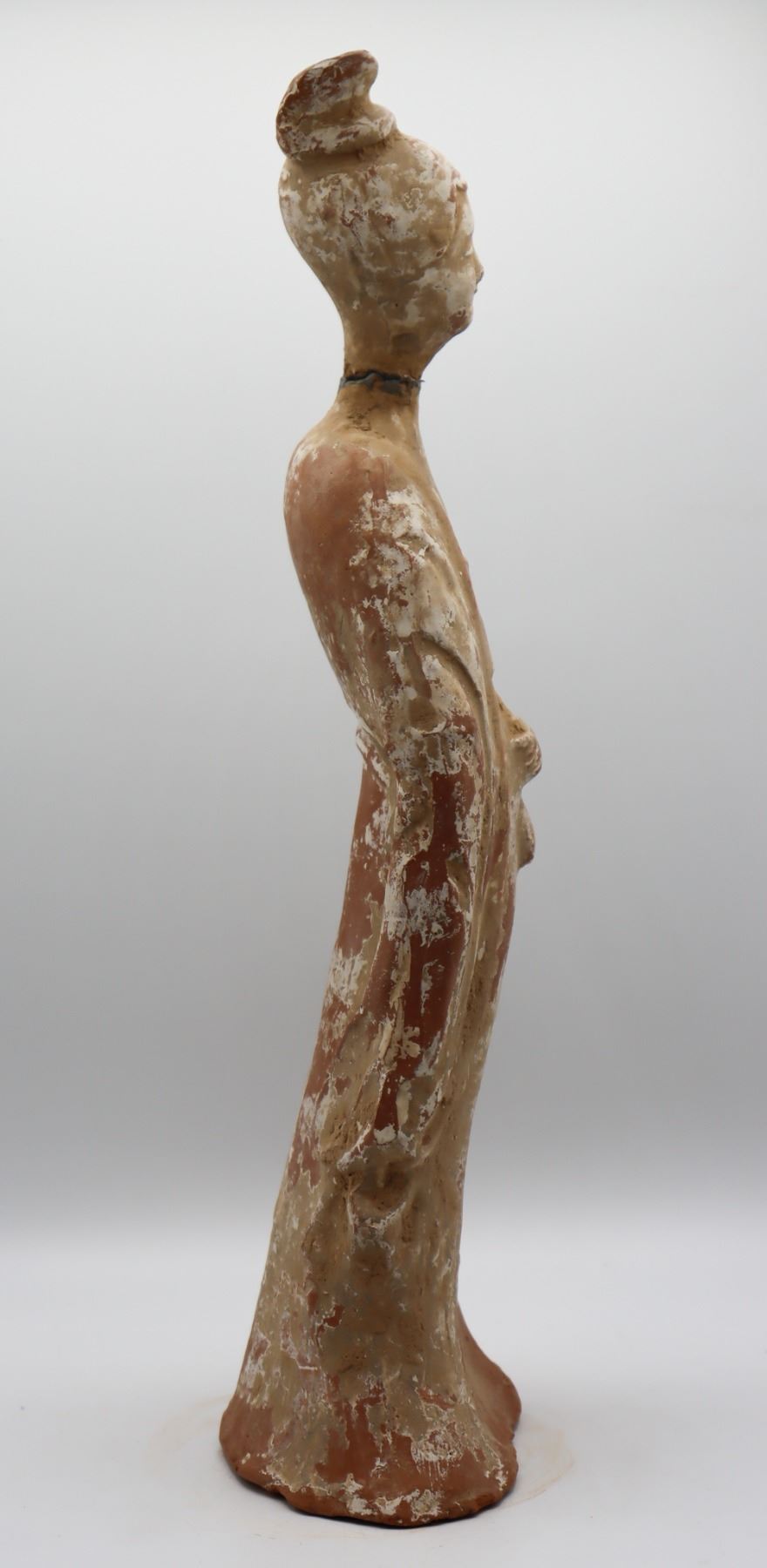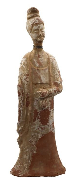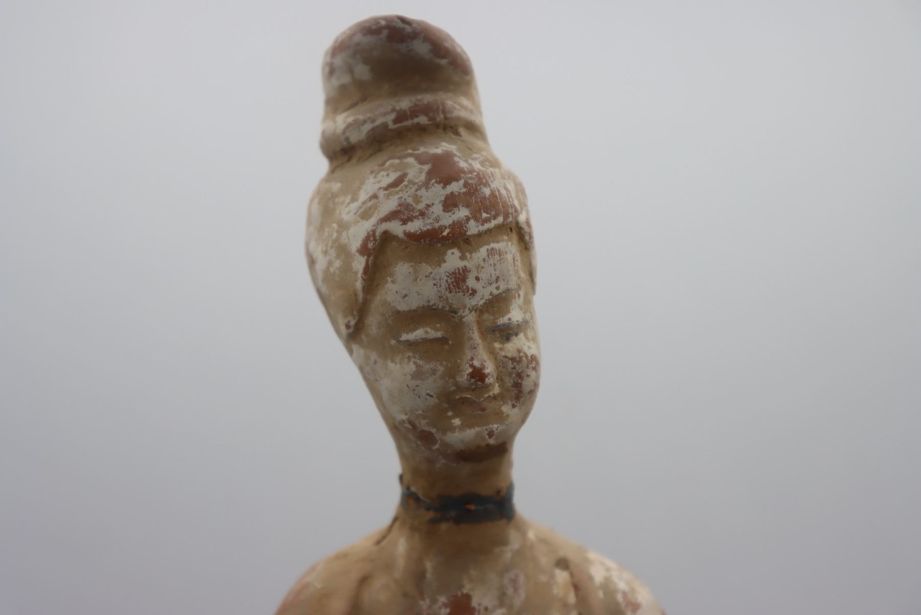 Remains of pigment on surface of hollow burial figure. Damage and repair to the neck. Sold as is.