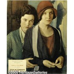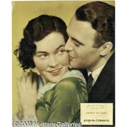 <B>Song O' My Heart (Fox, 1930)</B></I> Jumbo Lobby Cards (5) (14" X 17"). John McCormack was a well-known singer of the first part of the twentieth century, the prototypical Irish tenor. This lightweight story was created by the studio simply as an excuse for him to perform on film. He was joined by silent film actress Alice Joyce (in her last film before retiring), child actor Tommy Clifford and budding starlet Maureen O'Sullivan, just two years before gaining fame as Jane to Johnny Weissmuller's Tarzan, in only her second film role. The film tells the tale of a teacher who takes in the two children of his long-lost love after she dies. The real attraction, however, is the musical performance of McCormack, including a long unbroken concert sequence. McCormack and O'Sullivan are each featured on four cards, Clifford is on two cards and Joyce on one. Pinholes and a slight corner crease on all cards. Slight edge wear and wrinkles on one card, light staining on two cards. Fine/Very Fine. 5 items