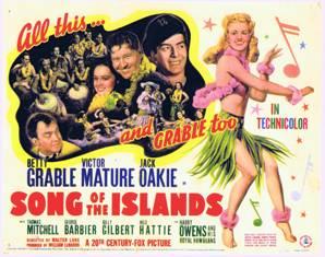 1 color hard stock. Song of the Island was released in 1942 and stars Betty Grable, Victor Mature and Jack Oakie.