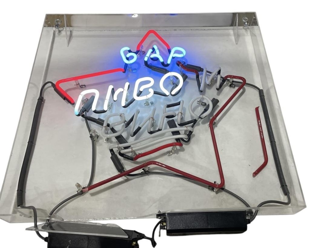 Neon sign only partially lights up. Attached to an acrylic box. Both have some damage, please see photos.