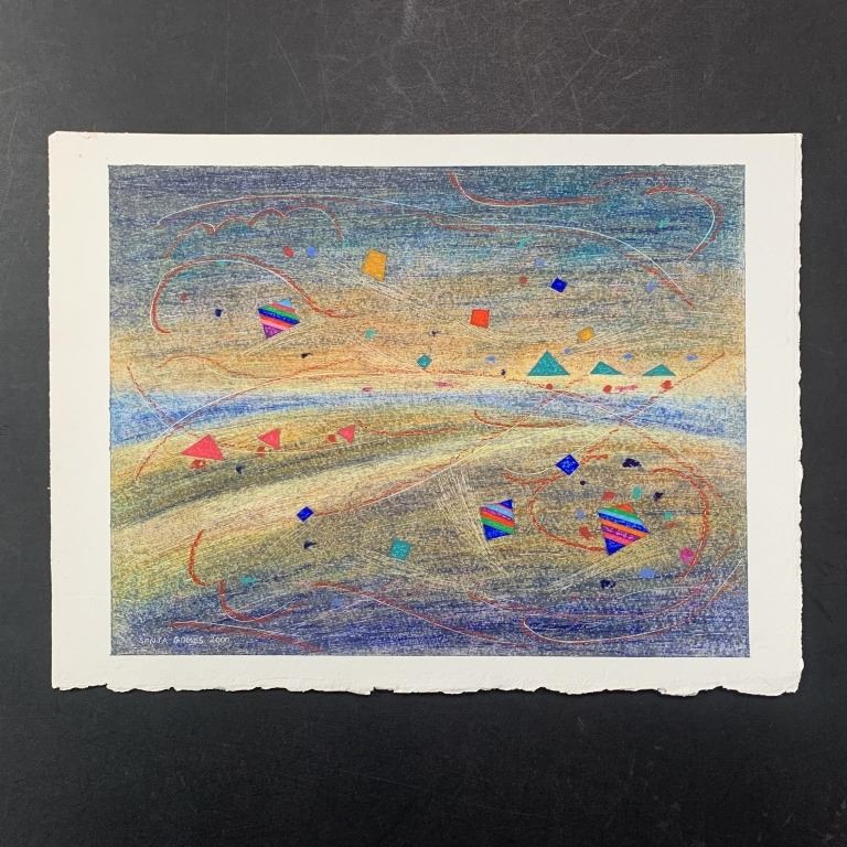 Sonja Gomes, Untitled, Original on Paper. Colorful shapes and swirls amongst a colorful background. Signed in the lower left corner. This piece is in excellent condition.