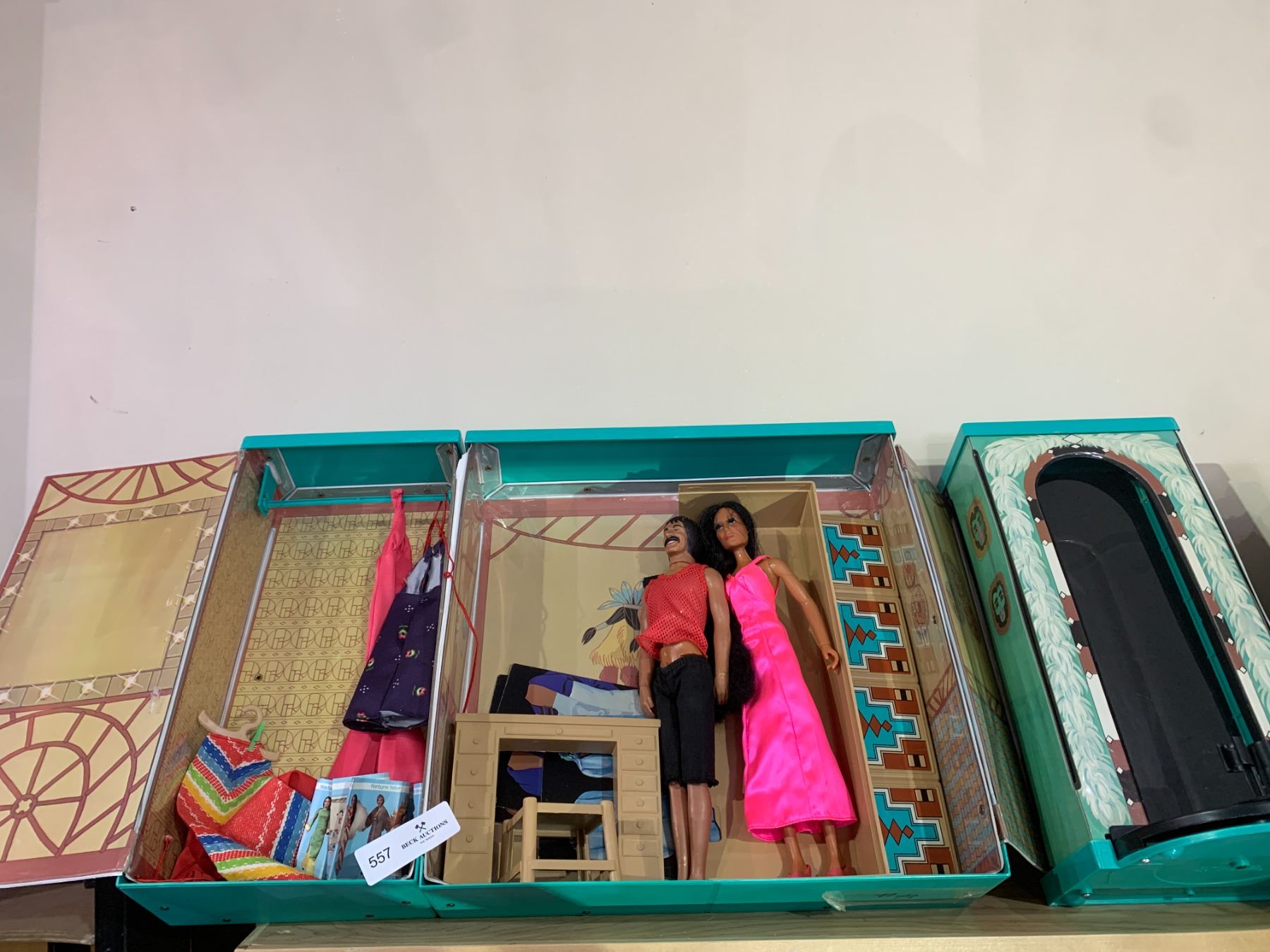 Sonny & Cher Doll and Case Set, with Collapsible Plastic Dollhouse