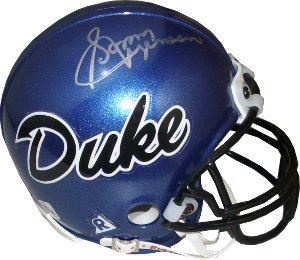 Sonny Jurgensen attended and played college football at Duke University. Jurgensen made the biggest impact that season as a defensive back, when he tied a team record with interceptions in four consecutive games. and ended the season with five interceptions. Duke finished the campaign with a 7-2-1 regular season record and an Atlantic Coast Conference title. Then on New Year's Day, Duke beat the Nebraska 34–7 in the 1955 Orange Bowl. Sonny Jurgensen has hand autographed this Duke Blue Devils Riddell mini helmet. Certificate of Authenticity from Athlon Sports.