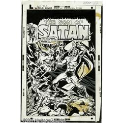 <B>Sonny Trinidad (attributed) and Tom Palmer - Son of Satan #2 Cover Original Art (Marvel, 1976).</B></I> Baphomet unleashes his endless legions of demonic warriors and Damion Hellstrom, the "Son of Satan," battles them back with his supernatural trident in the demon war of "The Possesion!" The title and issue banners, a word balloon, and a caption stat have slipped off the art art leaving glue residue stains; these missing type elements could be easily replaced; otherwise the art is in Very Good condition. The image area is 10" x 15". This sensational Bronze Age beauty will mess your mind and curdle your cool!