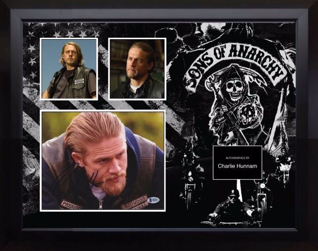 Custom framed Sons of Anarchy (SOA) signed photo and TV collage. Photo autographed by Charlie Hunnam. Approximate dimensions are 20x18 inches. This item is authenticated by Beckett. This item comes with a Certificate of Authenticity from a third party authenticator. This Certification of Authenticity does not imply that the item will be certified by any other rival authentication companies. The accompanied certification is the only certification the auction company can confirm. These items are being sold as collectable pieces and there is no guarantee that this item can be resold on any online marketplace. Each of these companies has their own policies and politics.