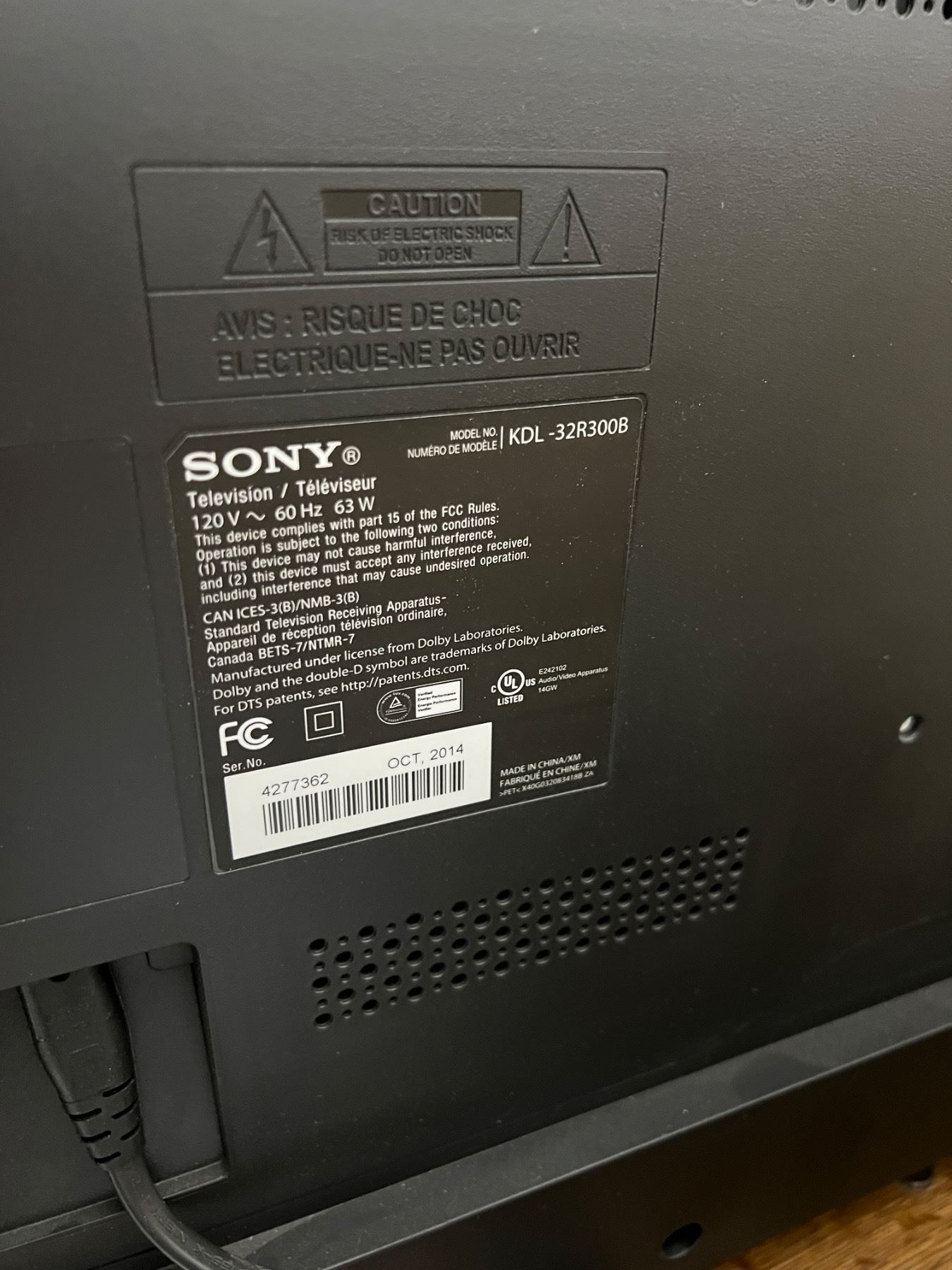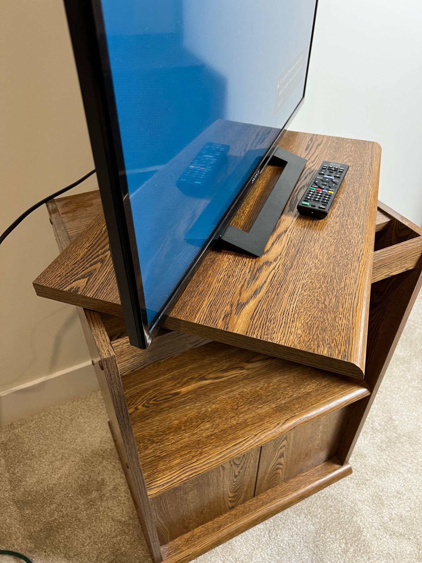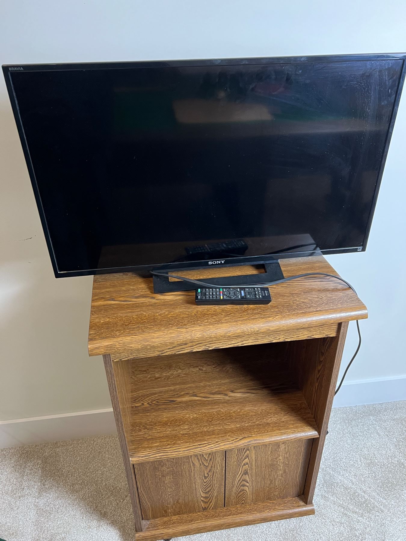Includes a Sony KDL-32R300B TV with remote (works), Swivel tv stand with storage compartment (22.5L x 16"W x 31"H) on wheels