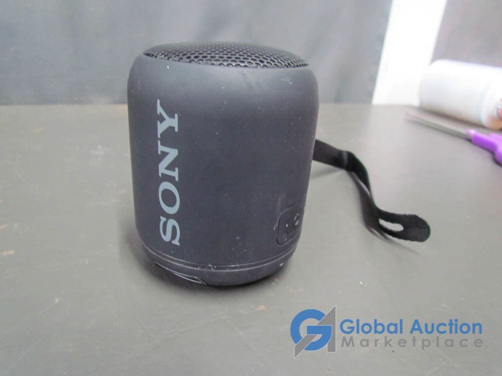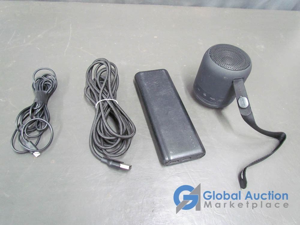Sony Bluetooth Speaker, Anker Portable Power Bank, and Phone Cords