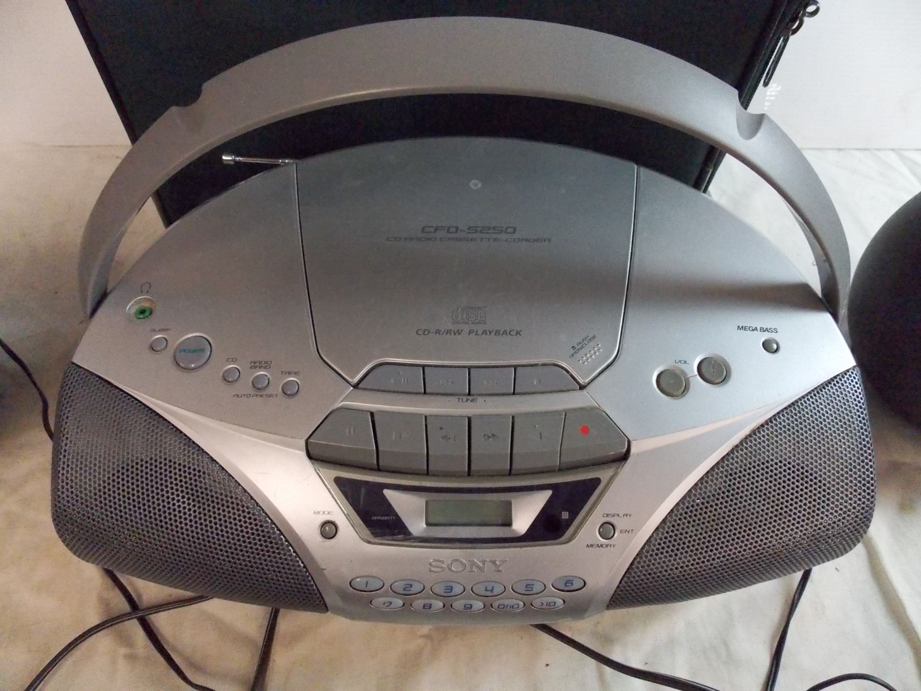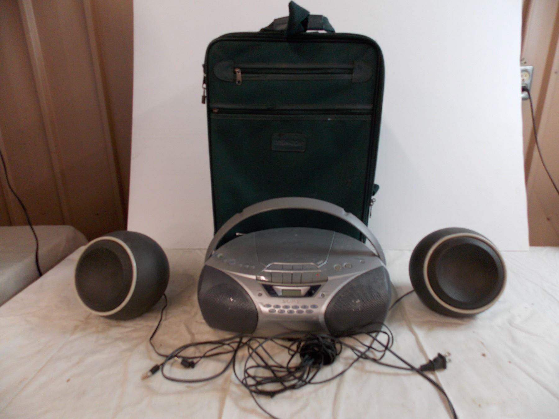 *Sony CFD-S250 CD/radio (working) with pair of speakers (untested) + suitcase luggage